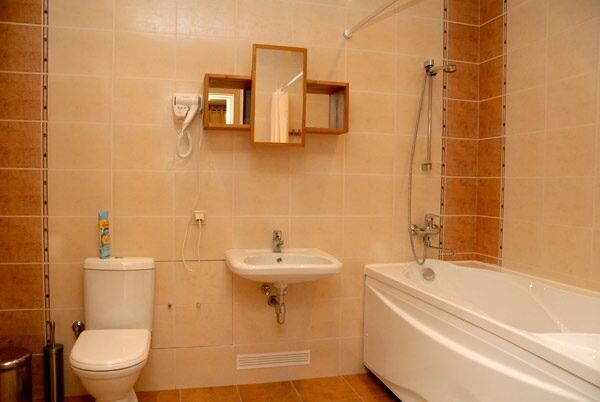 Ванная комната совмещена с санузлом. Номер оснащен телевизором, телефоном внутренней связи, Wi-Fi, кулером, косметическими средствами, тапочками и феном.