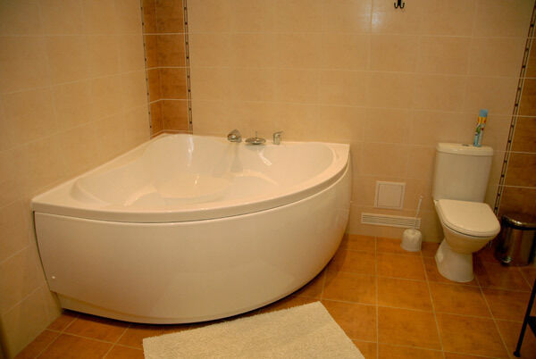 В корпусе установлен кулер с питьевой водой, холодильник, телефон. Большая спальня с отдельной ванной комнатой (с гидромассажной ванной) на первом этаже и две малые спальни с одноместными кроватями на втором этаже.
