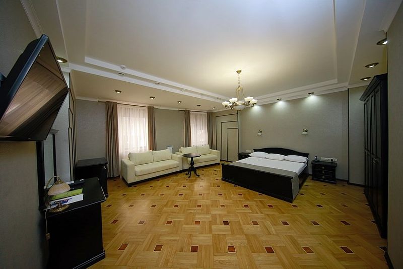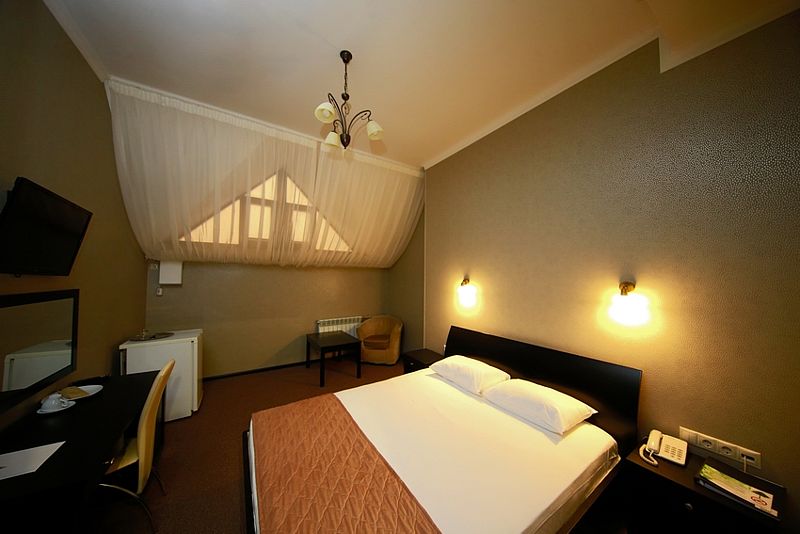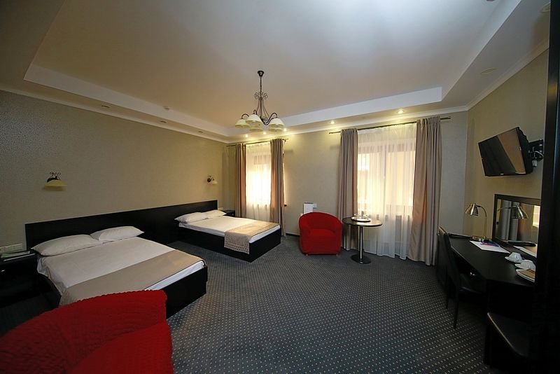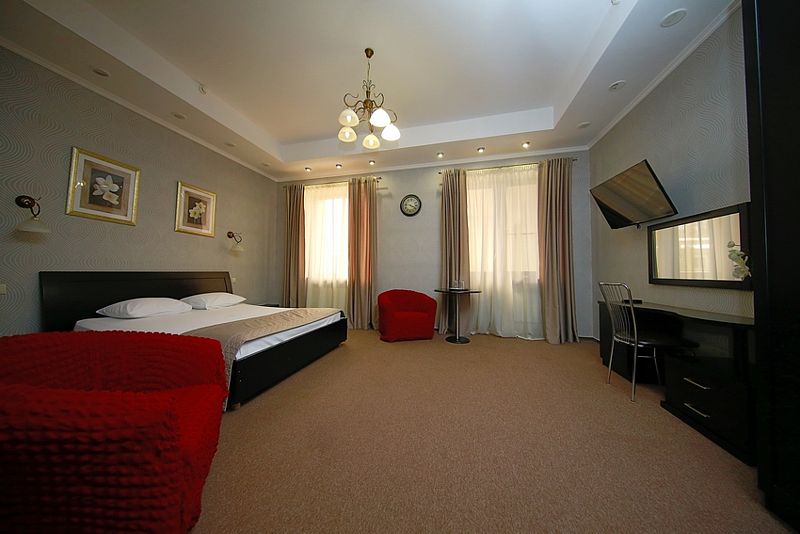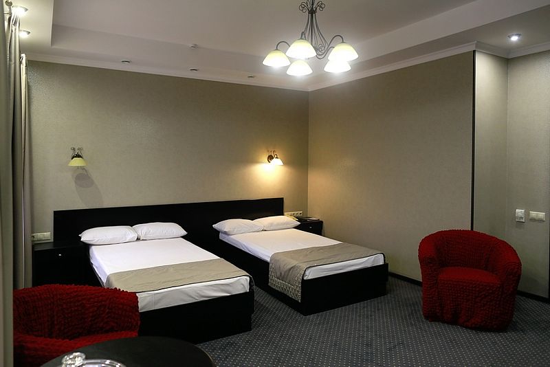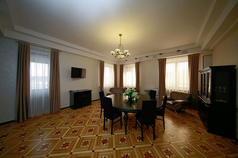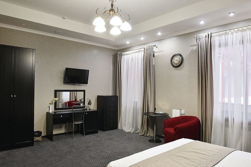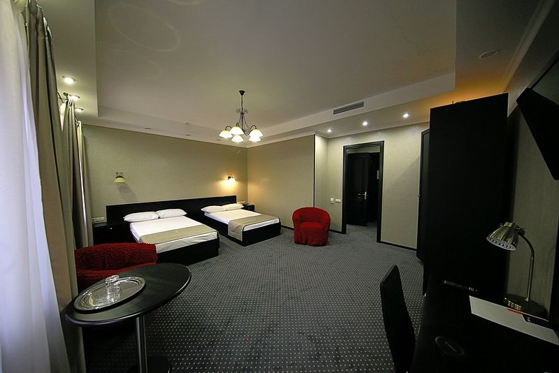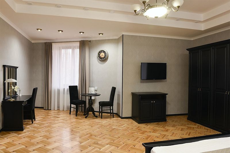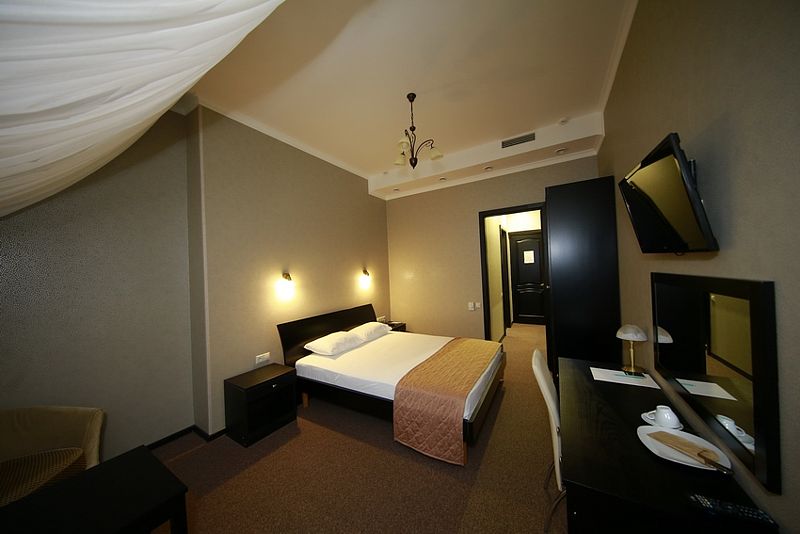 К услугам гостей — 36 комфортабельных номеров: одно- и двухместные стандартные номера, полулюксы, двухкомнатные и трехкомнатные люксы, двухкомнатные апартаменты. Гостиничные номера оснащены удобной мягкой мебелью, спальными гарнитурами, телефонами, телевизорами, системой климат-контроля, кабельным телевидением и беспроводным доступом в Интернет.