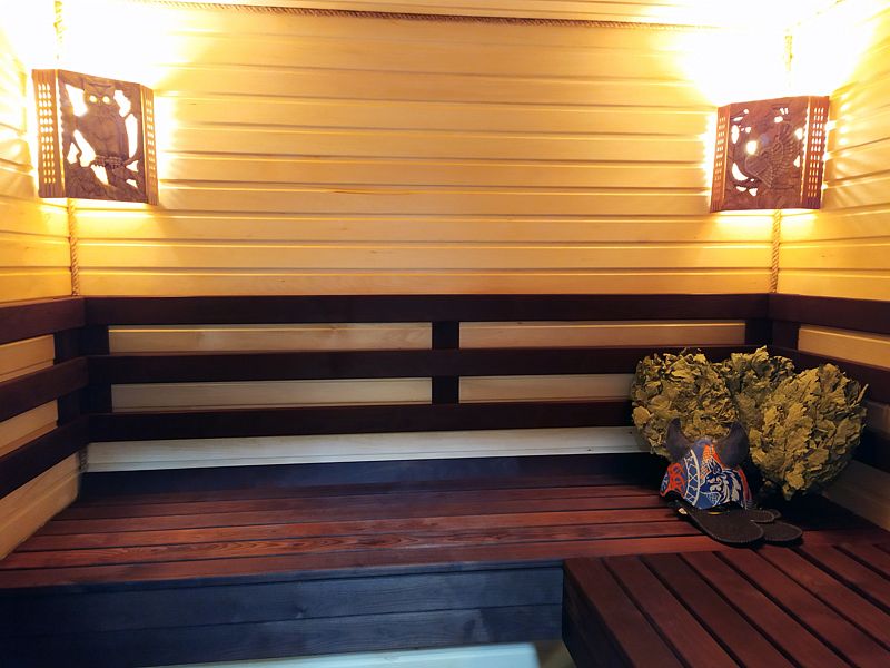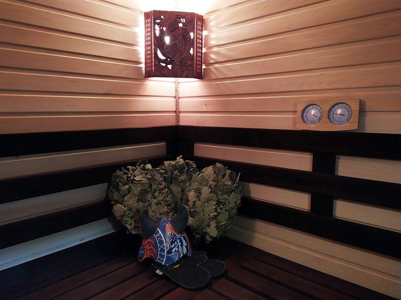 Инфраструктура: зона отдыха, душПарная выполнена в лучших традициях, широкие полки, система свежее дыхание, чугунная печь с закрытой каменкой. Печь наполнена жадеитом и обложенная малиновым кварцитом. В парной ароматные лекарственные травы. Во время парения запрещено употреблять алкогольные напитки.
