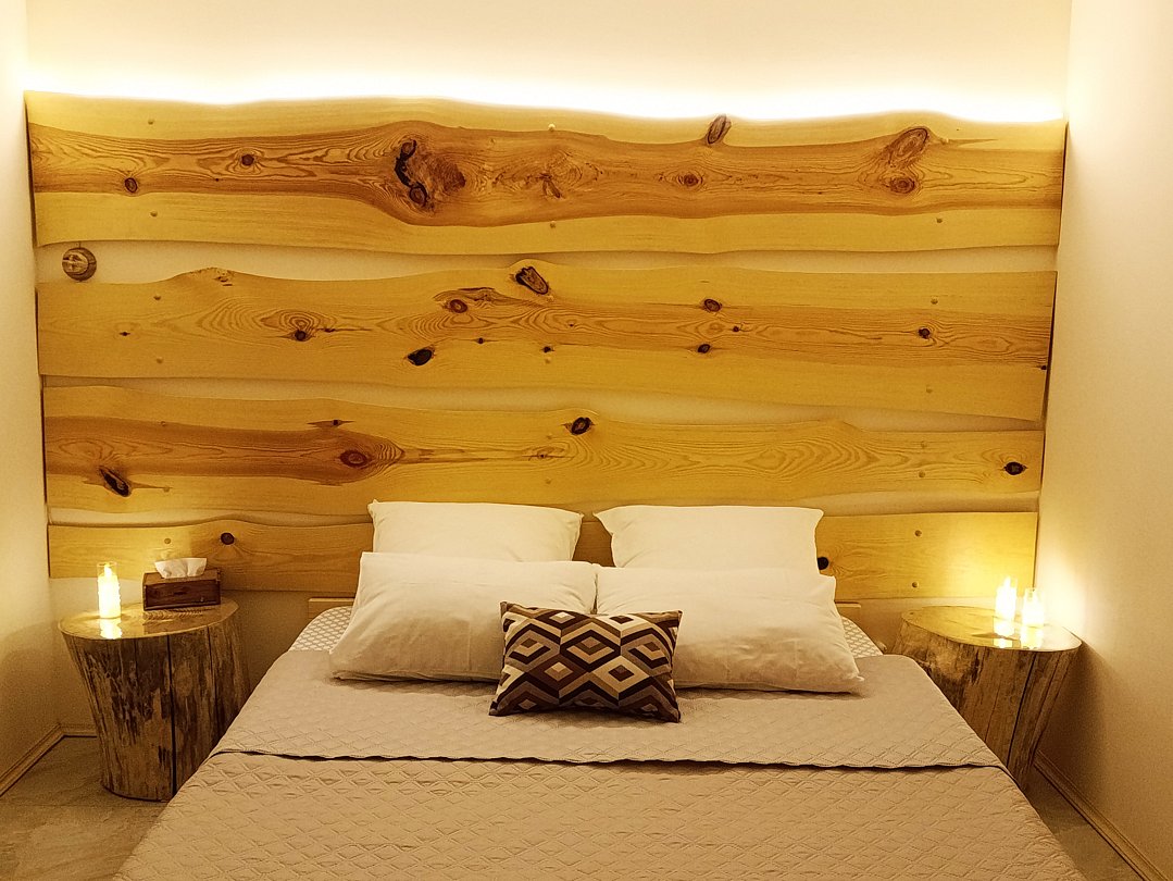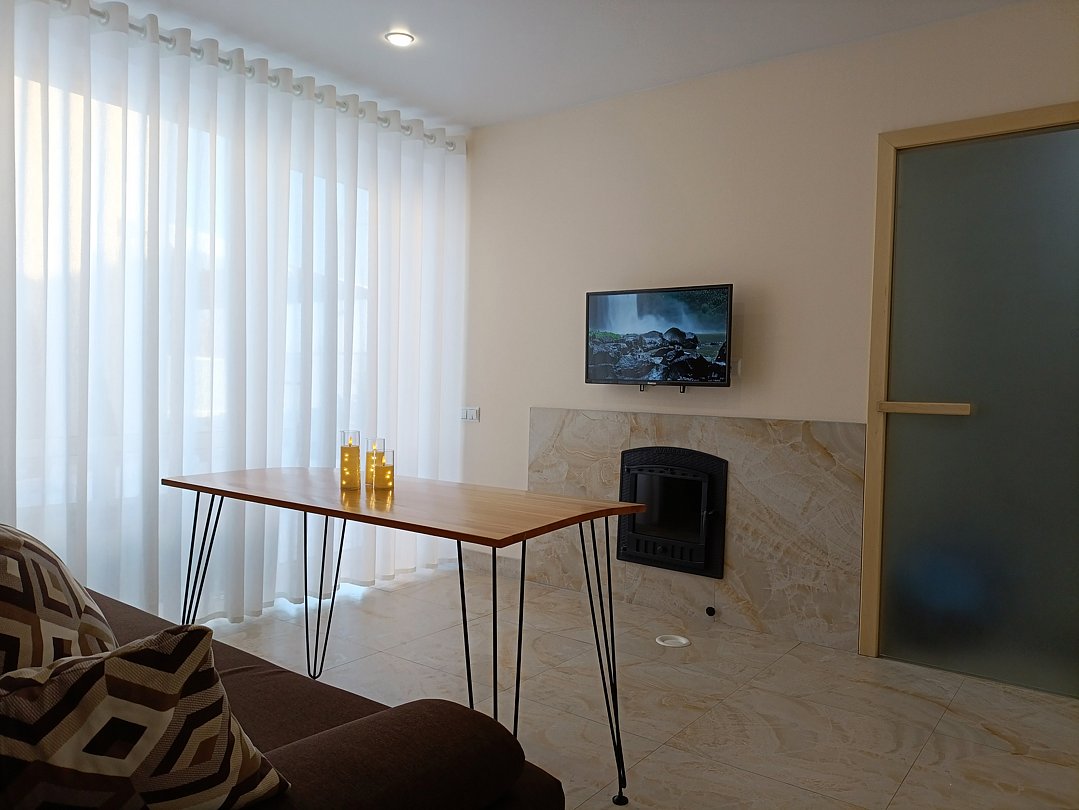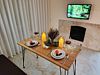 - Гостиная: двуспальный диван-кровать (165 х 200), кондиционер, SmartTV, Wi-Fi.