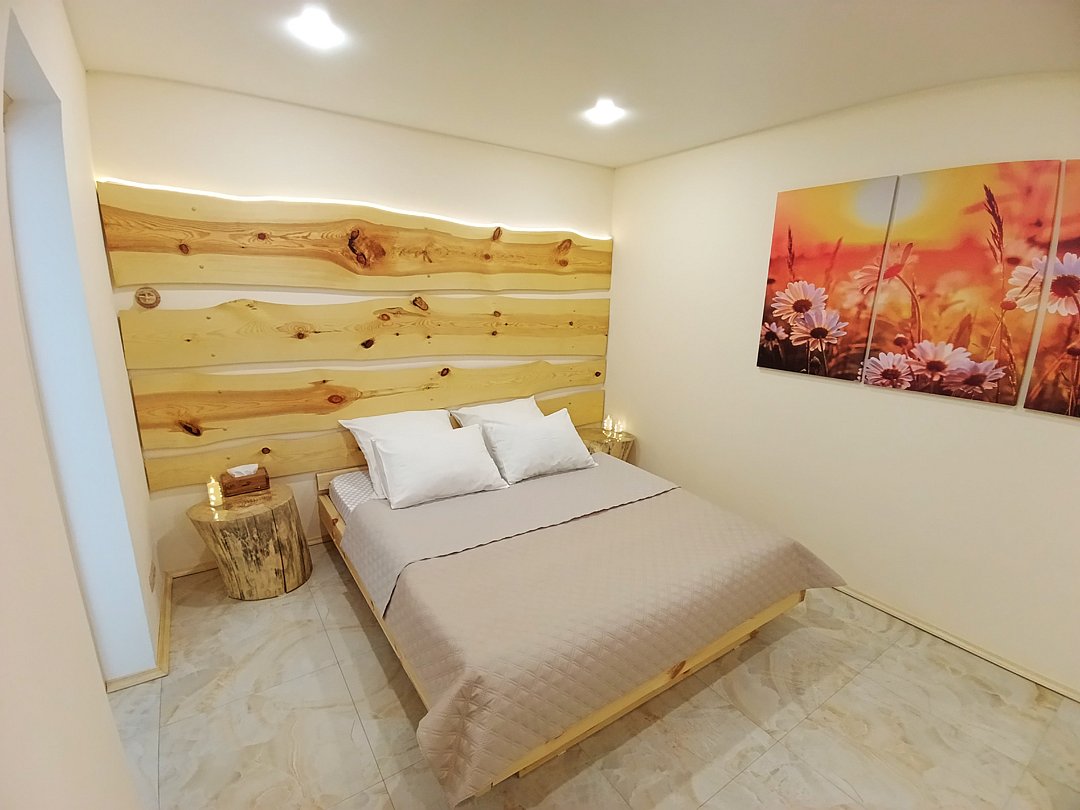 - Спальня: большая двуспальная кровать (165х200) с новым ортопедическим матрасом, обеспечивающим здоровый и комфортный сон. Чистое постельное белье, второй SmartTV.
