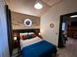 Дом состоит из трех спален, в каждой есть двуспальная кровать, также в одной из спален дополнительно установлена двухъярусная кровать.