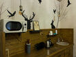 В спальной комнате, под неярким лунным светом, расположилась двуспальная кровать. В кухне-гостиной имеется все необходимое.