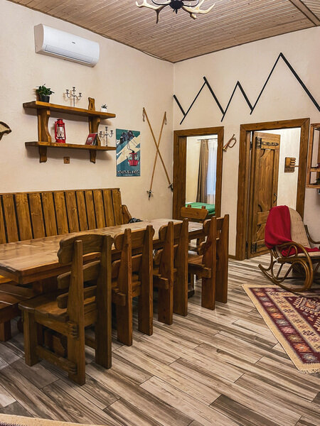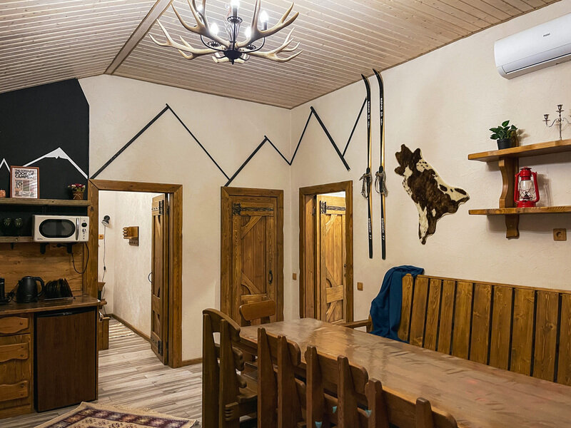 В доме есть все необходимое для комфортного отдыха: удобные спальные места, оборудованная кухня, обеденная зона, 2 душевых комнаты.