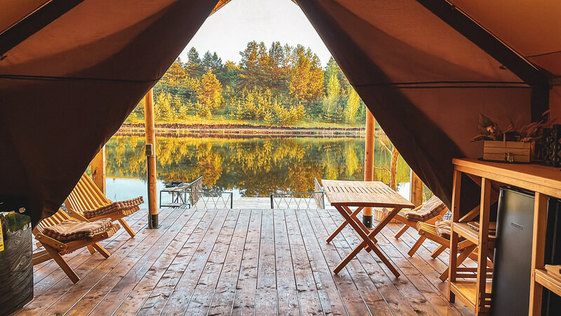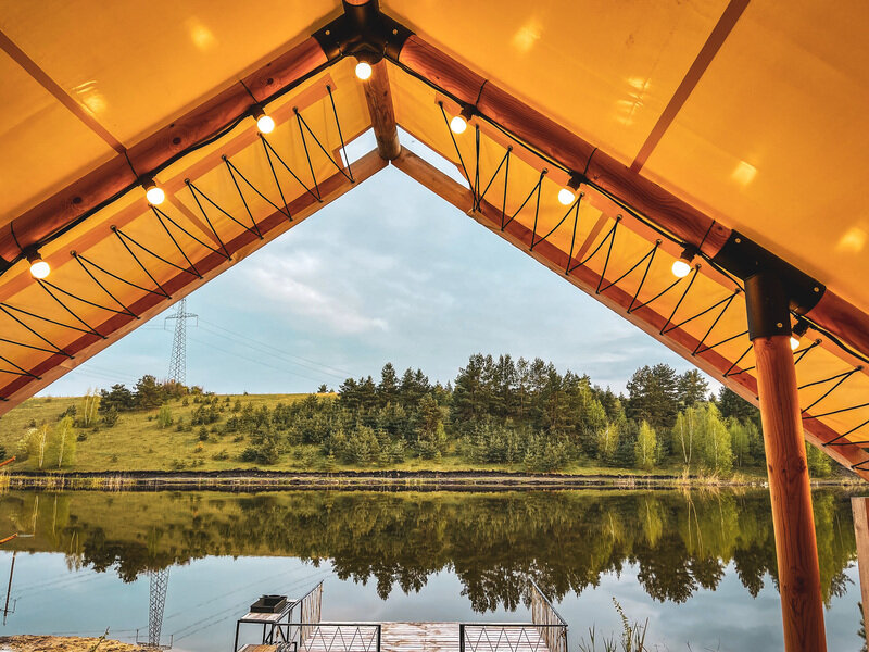 Здесь гостей ждет общение с живой природой, высококлассная рыбалка и пассивная охота — сбор ягод и грибов, а также домашний комфорт и уют в оборудованных всем необходимым домиках, а при желании — в палатках «глэмпинг».
