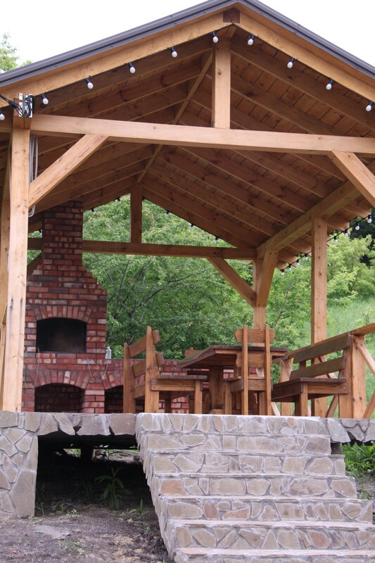 Беседки оснащены освещением и розетками. При аренде беседки предоставляется мангальная зона и рыбалка.