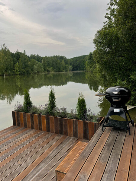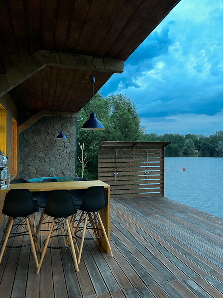 Из окон открывается панорамный вид на озеро, рядом с домом - мангальная зона.