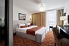 телевизор, Wi-Fi, телефон, холодильник, кондиционер, настольные лампы, фен, электронные замки, душевая кабина, халаты, банные полотенца, тапочки, косметические средства, две односпальные или большая двуспальная кровать, ортопедический матрас, стулья, шкаф для одежды, письменный стол, багажная тумба, звуконепроницаемые стены и окна, мини-бар, письменные принадлежности, чайный набор, обслуживание номеров, информационная карта, меню, сейф, чайник, косметическое зеркало, питьевая вода, ковровое покрытие, вид на городВ гостиничном номере