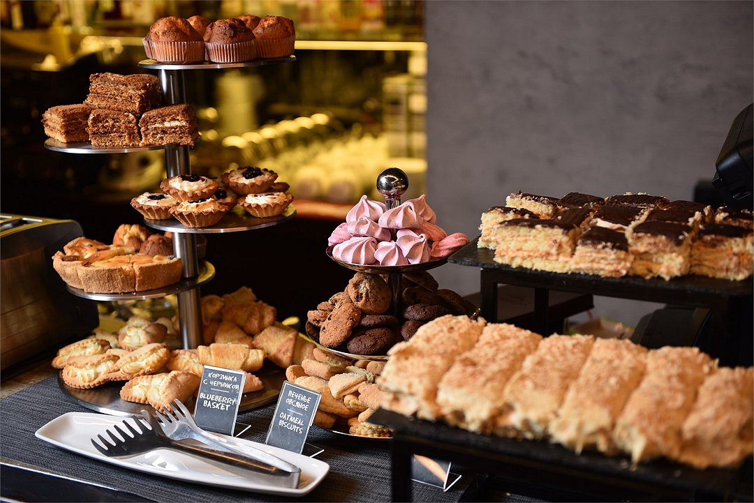 Меню лобби-бара порадует отличным ассортиментом закусок, рыбными и мясными блюдами, десертами, а также большим выбором элитных напитков и авторскими коктейлями.
