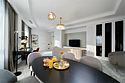 два телевизора, Wi-Fi, телефон, холодильник, кондиционер, настольные лампы, фен, электронные замки, кофемашина, утюг, ванная комната, душевая кабина, ванна, дополнительный санузел, халаты, банные полотенца, тапочки, косметические средства, терраса, кровать «King size», гладильная доска, ортопедический матрас, диван, кресла, стулья, шкаф для одежды, письменный стол, обеденный стол, багажная тумба, пуфики, мебельный гарнитур, две комнаты, звуконепроницаемые стены и окна, мини-бар, письменные принадлежности, чайный набор, набор посуды, обслуживание номеров, информационная карта, меню, сейф, чайник, мягкая мебель, косметическое зеркало, питьевая вода, обеденная зона, гостиная зона, ковровое покрытие, вид на городВ гостиничном номере