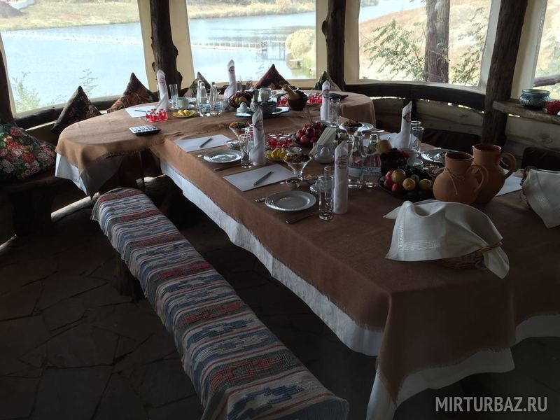 Беседка отлично подойдет для отдыха больших компаний, ведь ее вместимость — 25 взрослых человек. Она оборудована рукомойником, светильниками, розетками, рядом располагается мангал.
