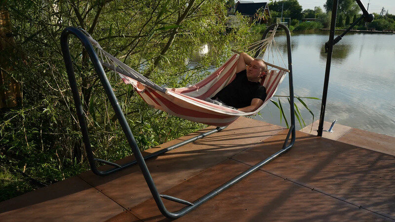 А так же на территории домика имеется большая терраса для рыбалки, мангальная зона и зона отдыха