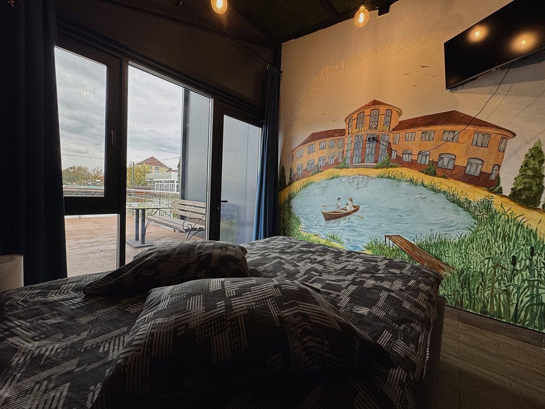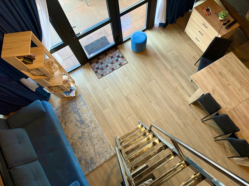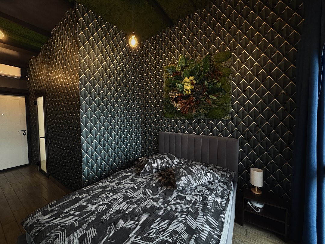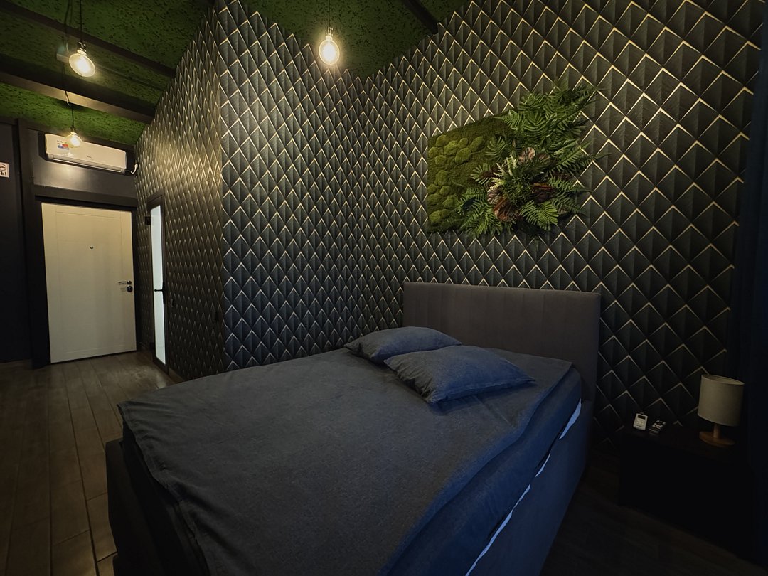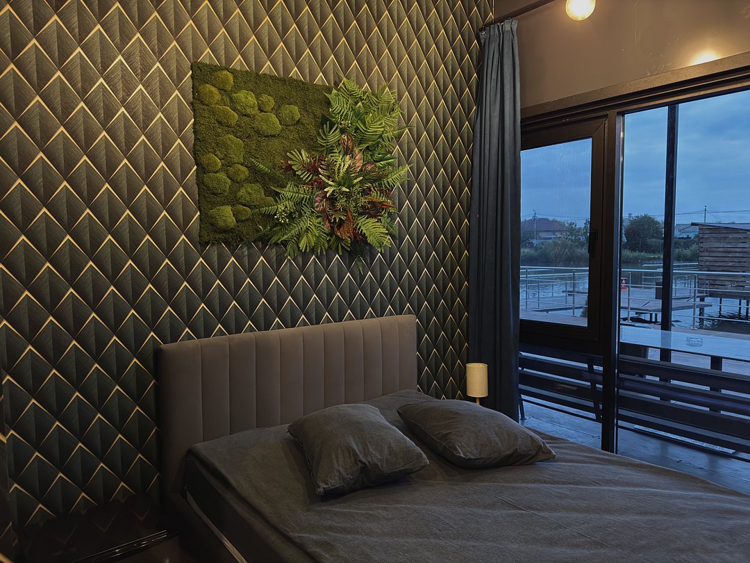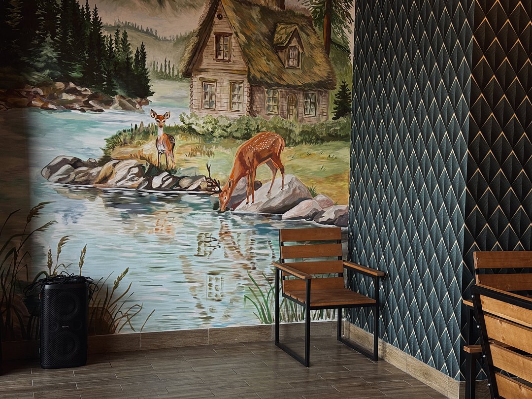 Удобства: кровать двуспальная, стулья, столик, телевизор, душевая кабина, туалет в каждом номере отдельно, своя кухня, микроволновка, чайник, столовые приборы, индукционная плита, холодильник.