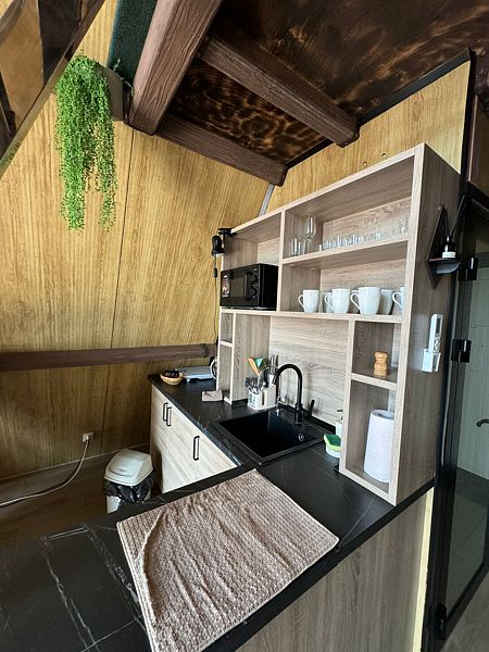 В нем предусмотрено все для удобства: 4 основных + 2 доп. места под запрос (за доп. плату). Полностью оборудованная кухня: электроплита, чайник, микроволновая печь, посуда, кухонные принадлежности, холодильник! И конечно же кондиционер, TV и Wi-fi.