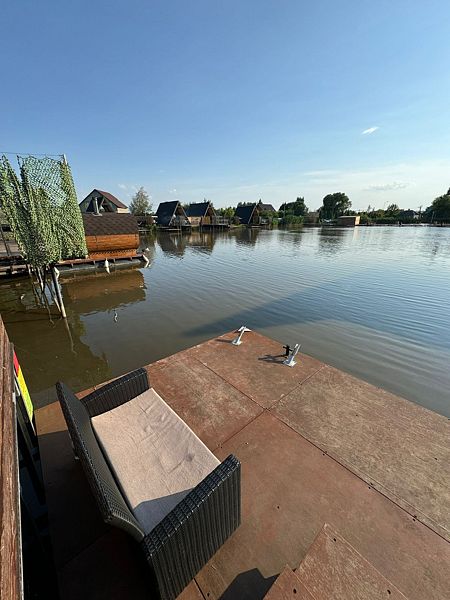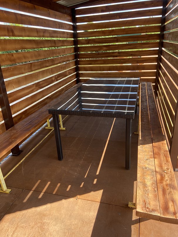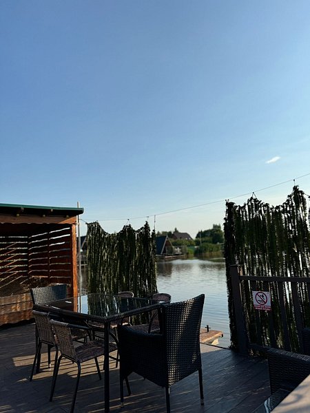 Беседка расположена на помосте, рассчитана вместительность до 8 человек. К беседке входит 2 сижи для ловли (на против беседки).