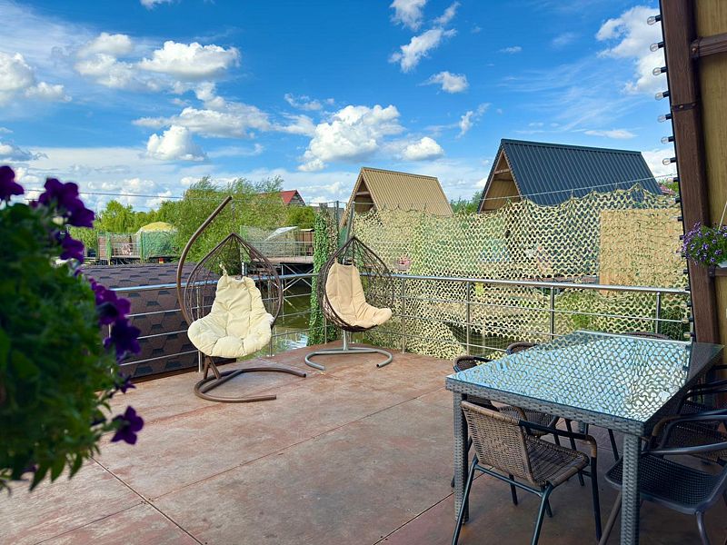 А так же на территории домика имеется большая терраса для рыбалки, мангальная зона и зона отдыха.