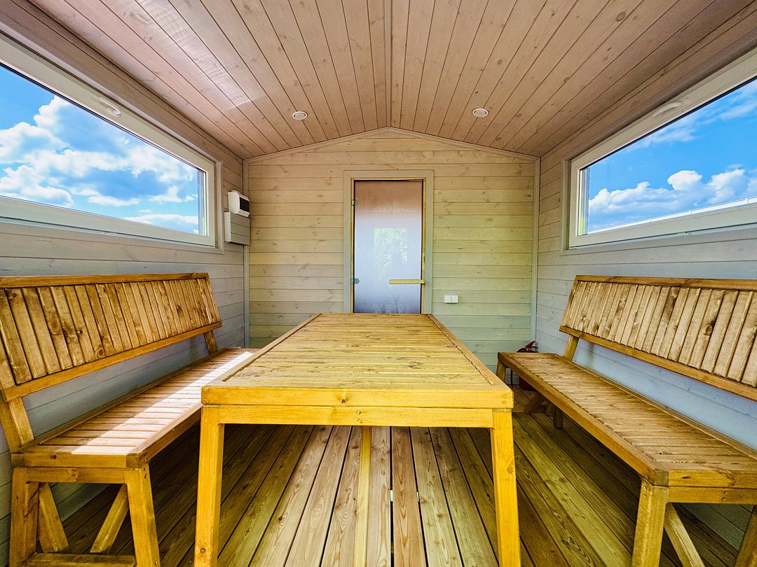 Домик рассчитан на компанию из 10 человек (6 осн. + 4 доп. места).