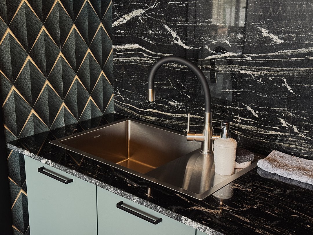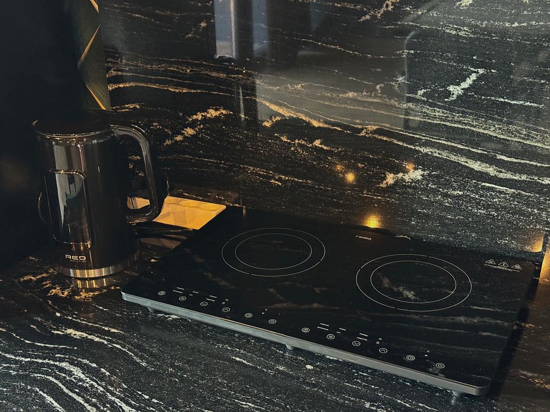 Полностью оборудованная кухня: электроплита, чайник, микроволновая печь, посуда, кухонные принадлежности, холодильник ! И конечно же кондиционер, TV и Wi-fi