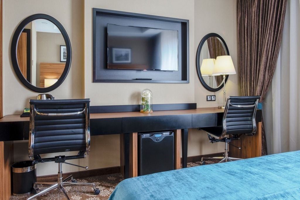 Во всех номерах есть кондиционер, телевизор с плоским экраном и спутниковыми каналами, холодильник, чайник, душ, фен и письменный стол. В каждом номере отеля есть шкаф и собственная ванная комната.