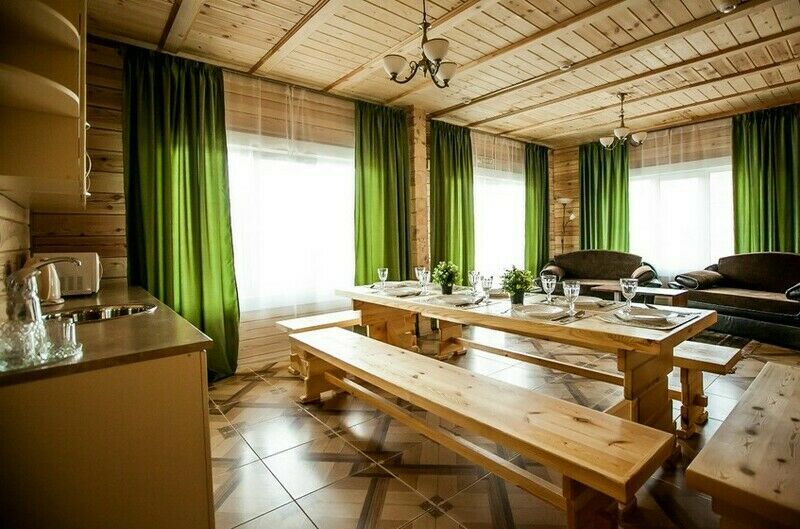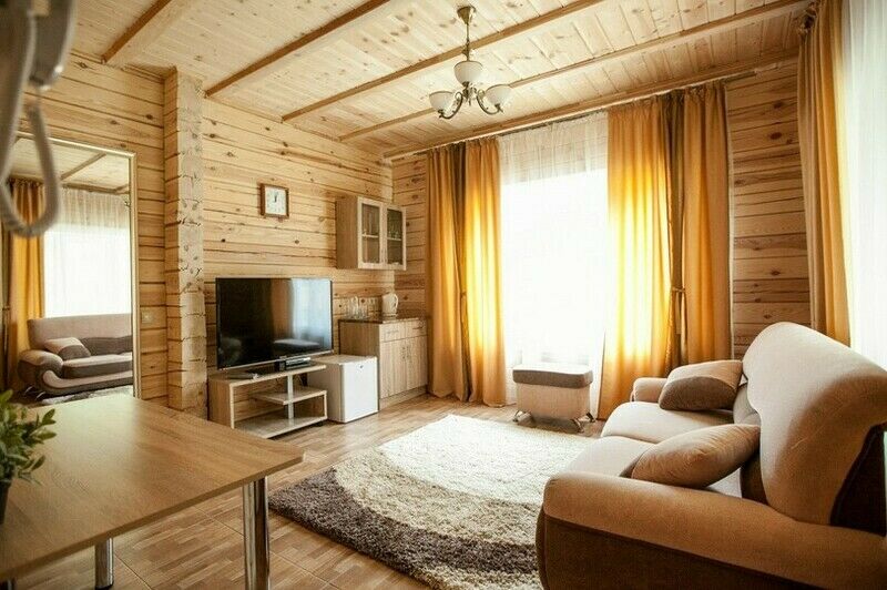 В номере есть современная гостиная с кухонной и обеденной зоной. К услугам гостей набор посуды, электрочайник, минибар, холодильник, микроволновая печь, зона отдыха с домашним кинотеатром, две спальни с кроватями,внутренний телефон с бесплатным выходом в городскую сеть,высокоскоростной доступ в Интернет,спутниковое ТВ (Триколор тв, более 100 каналов),кондиционер,финская сауна,терраса,беседка - барбекю.