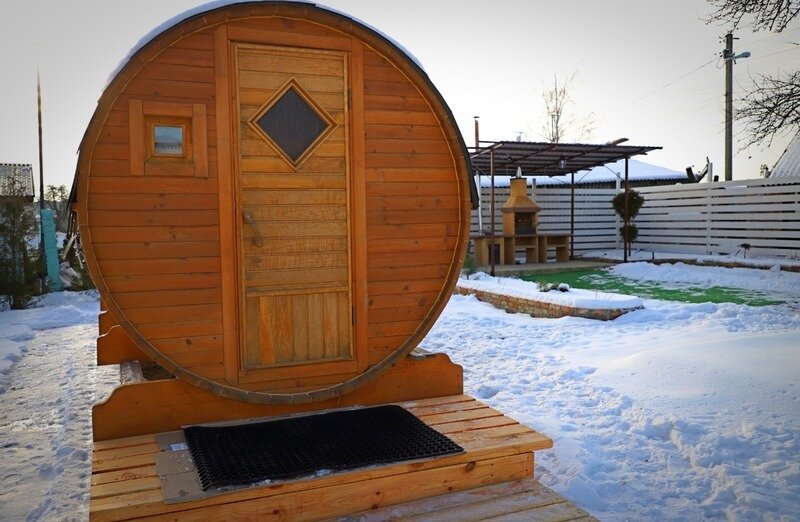 Время работы: от с 10.00 до 23.00Трехсекционная баня-бочка на дровах с вместимостью до 6 человек, отдельной парилкой и раздевалкой.