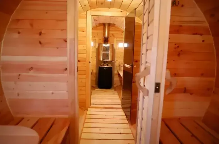 Читать полностьюТрехсекционная баня-бочка на дровах с вместимостью до 6 человек, отдельной парилкой и раздевалкой.