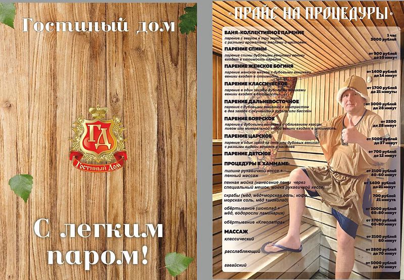 - SPA-центр — 1 час ежедневно в любое время (бани-сауны, мини-бассейны, купели, бассейн под открытым небом с подогревом, зоны отдыха с чаепитием, настольные игры);