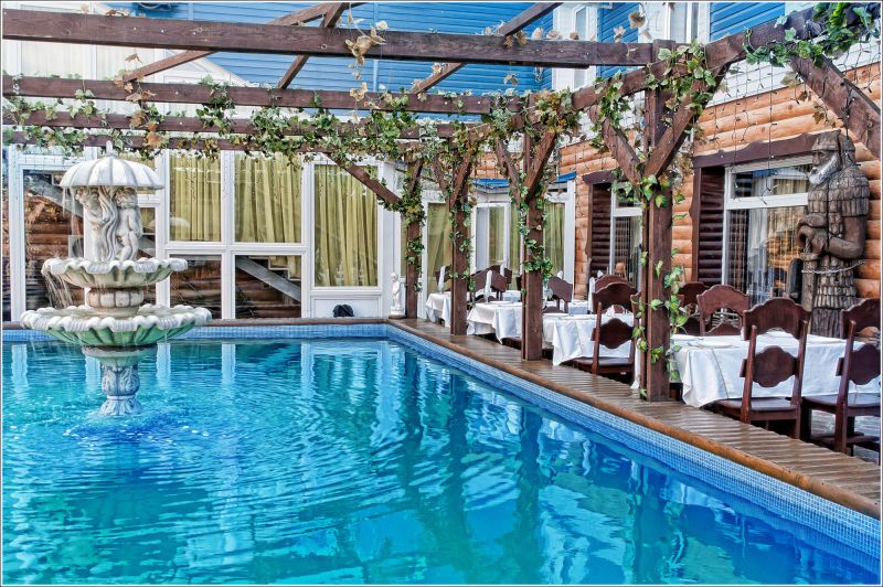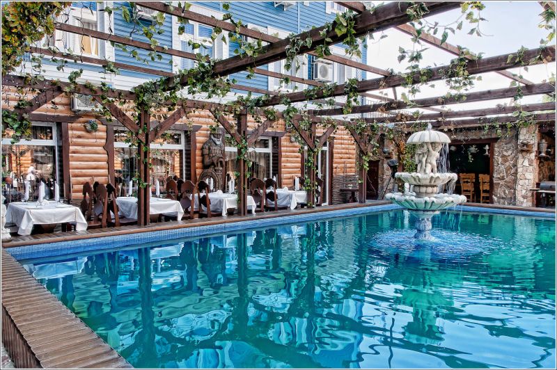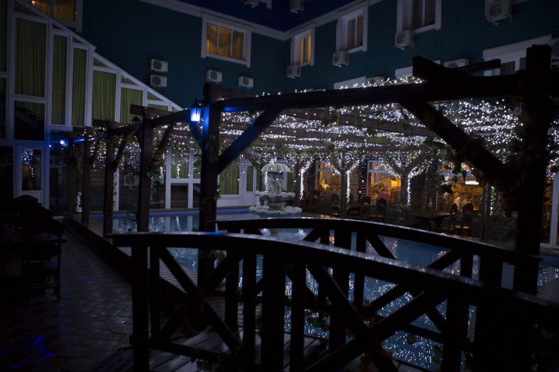 Ресторанный комплекс состоит из трех концептуальных заведений с различной кухней и особенной атмосферой, имеется конференц-зал и бизнес-центр. Дополнительно в распоряжении гостей – 7 основных и 10 дополнительных саун с парными, комнатами отдыха, бассейнами и купелями, а также открытый бассейн с подогревом. При необходимости предлагается обслуживание в номерах, есть стол для настольного тенниса, работает массажный кабинет.
