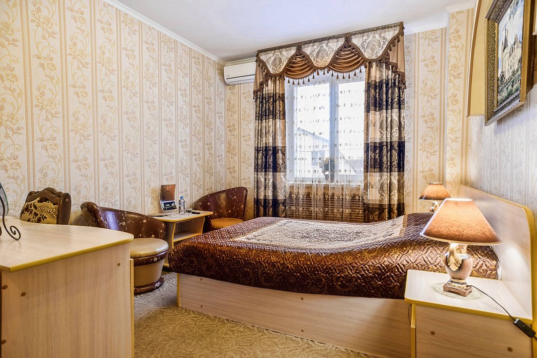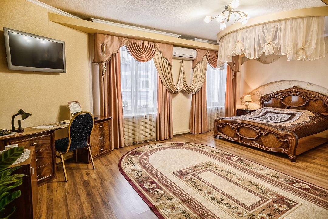 Комплекс располагается в Фокинском районе города, что очень удобно для прибывающих на личных автомобилях, остальным постояльцам в течение всего периода проживания предоставляется бесплатный трансфер. Гостиницу отличает оригинальное оформление номеров – каждый из них декорирован в индивидуальном стиле, номерной фонд составляют 115 номеров. Для бронирования доступны как варианты эконом-класса, так и просторные апартаменты с собственной сауной.