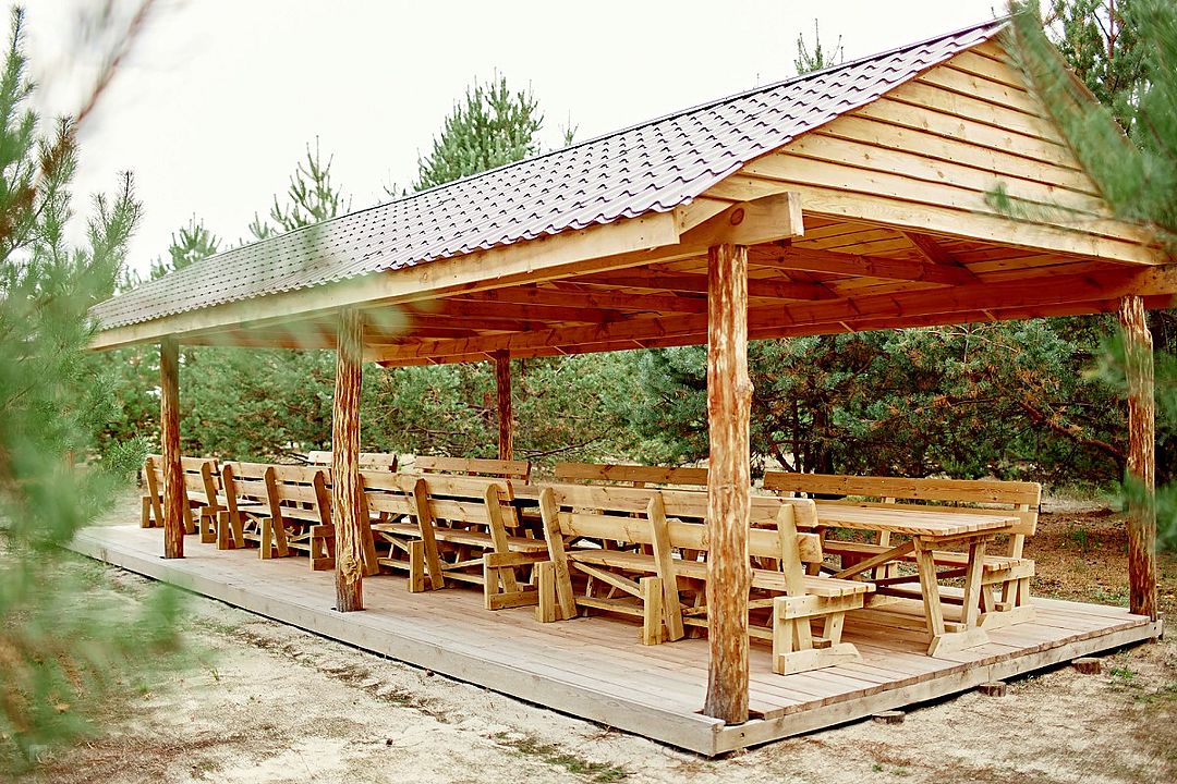 - открытые деревянные беседки: погожим летним днем очень приятно укрыться в тени, любоваться видом и дышать свежим воздухом.