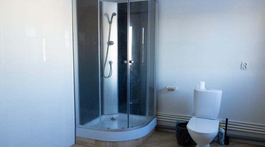 Кухня (холодильник, плита, посуда). Санузел (душевая кабина, раковина, унитаз,