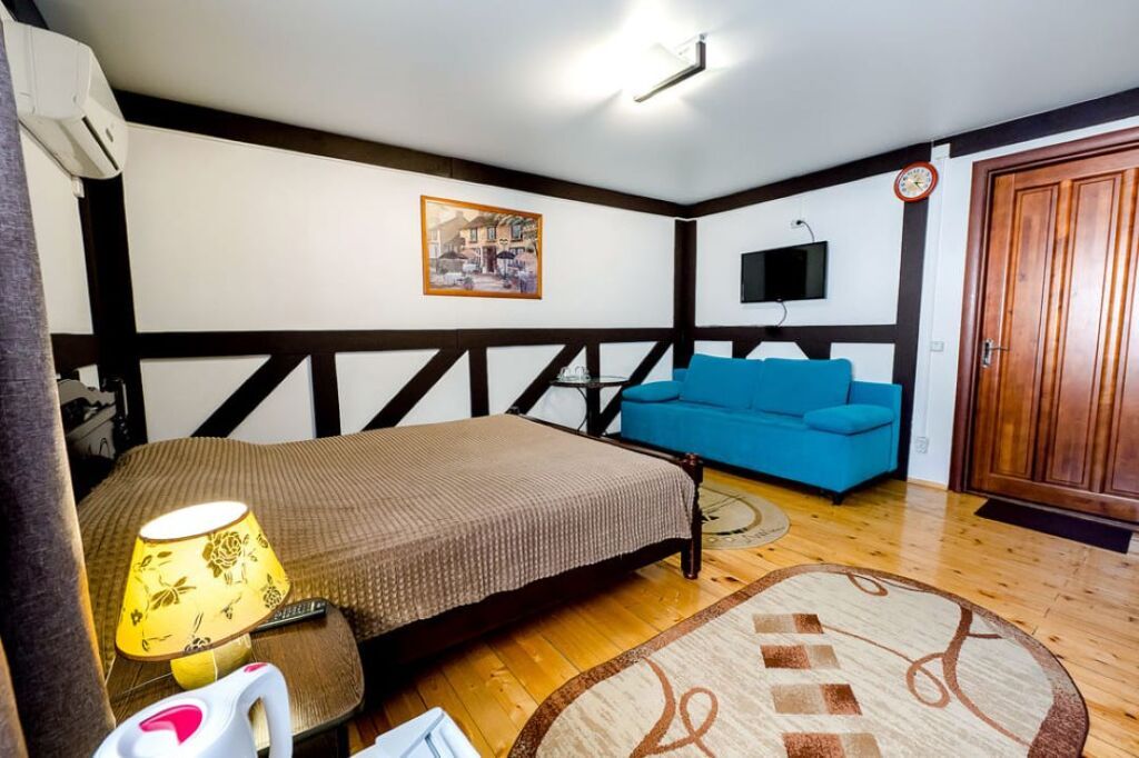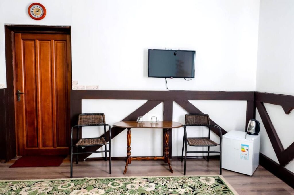 В номере вы найдёте телевизор и халат. Оснащение зависит от выбранной категории номера.
