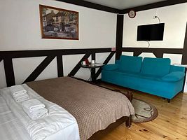 февр. 2021 г.Рекомендую. Я бы еще вернулся...Не смотря на малопрезентабельный внешний вид отеля, внутри он даже очень хорош. Вполне вероятно, что не смогли оценить отель снаружи по причине сильного снегопада накануне. Комфортом и чистотой остались более чем удовлетворены. Останавливались здесь только на одну ночь, поэтому всех предлагаемых прелестей ощутить просто не успели. На подготовку бани с бассейном требовалось время, которого у нас, к сожалению, не было. Отличный зал ресторана...Правда, так не понял, работает ли он. Номер чистый, просторный и уютный.. Континентальный завтрак - как везде на континенте... Соотношение цена-качество на 10 баллов. Спасибо персоналу!