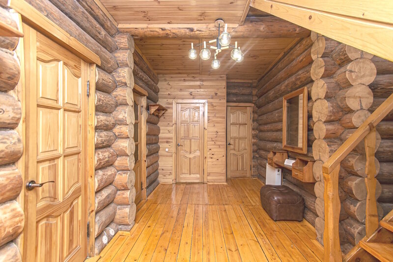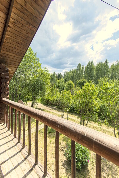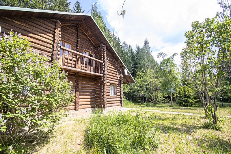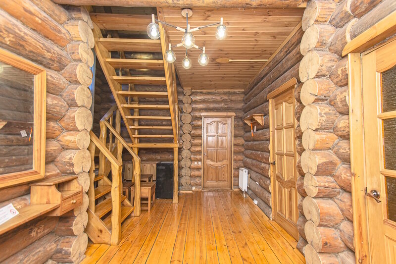 Коттедж включает в себя просторную прихожую, которую можно использовать как отдельную зону для отдыха, гостиную с камином, кухню, три спальня, душевую, две туалетные комнаты, сауну и два балкона.