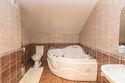 В гостиной находится телевизор, диван, кресла, сервант с посудой, декоративный камин. В первой ванной комнате — душевая, туалет, умывальник и сауна. Во второй — джакузи, туалет, умывальник.