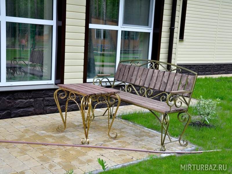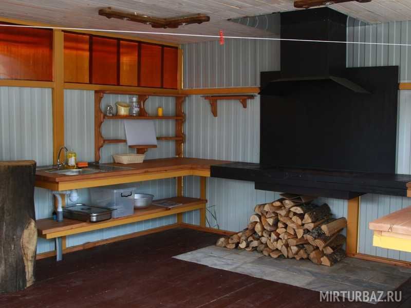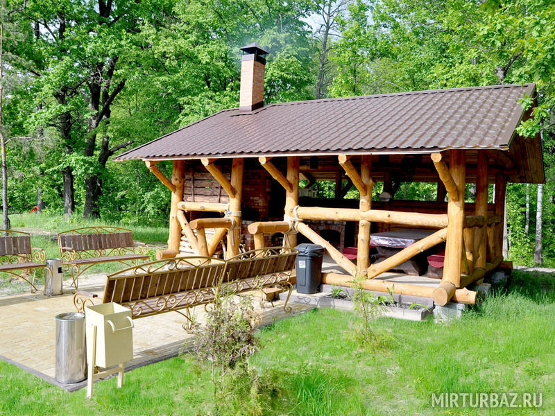 В «летнем домике», для удобства отдыхающих, есть свет и розетки. Беседка оборудована всем необходимым для пикника: мангал, шампура, посуда.