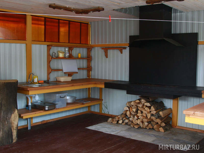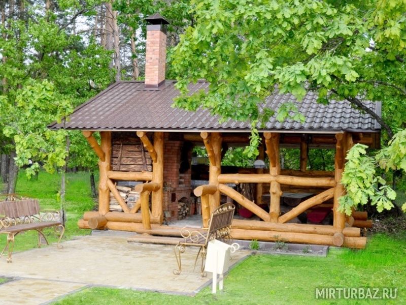 Рядом с коттеджем – индивидуальная беседка для барбекю с мангалом и дровами.