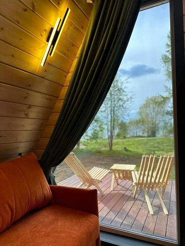 Глэмпинг «Baikal Surf» предлагает аренду уютных домиков в стиле А-фрейм на первой береговой линии озера Байкал.