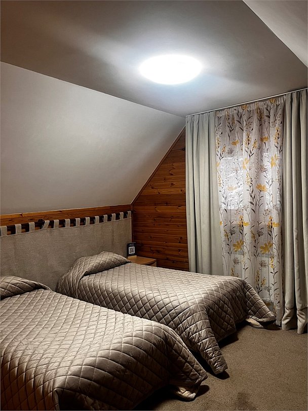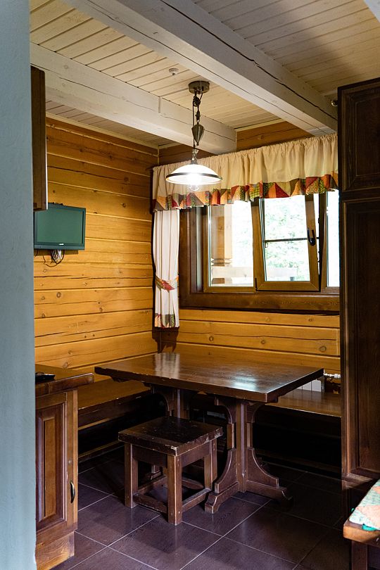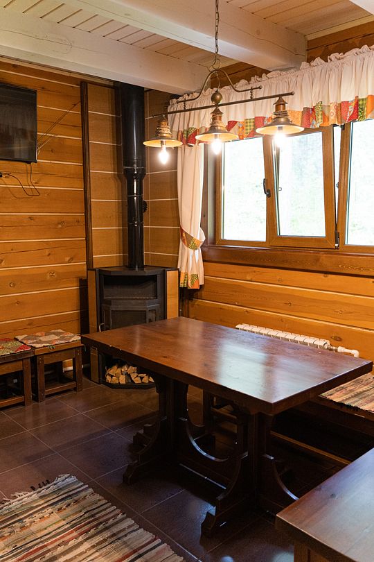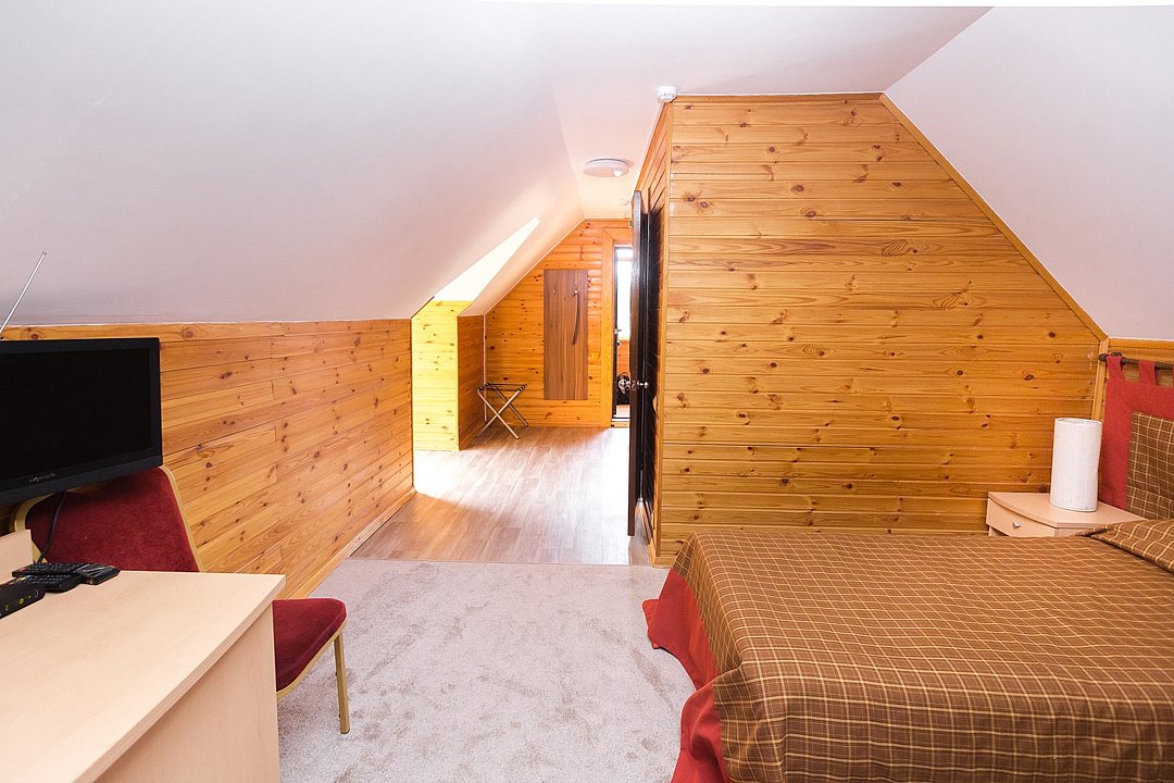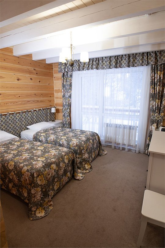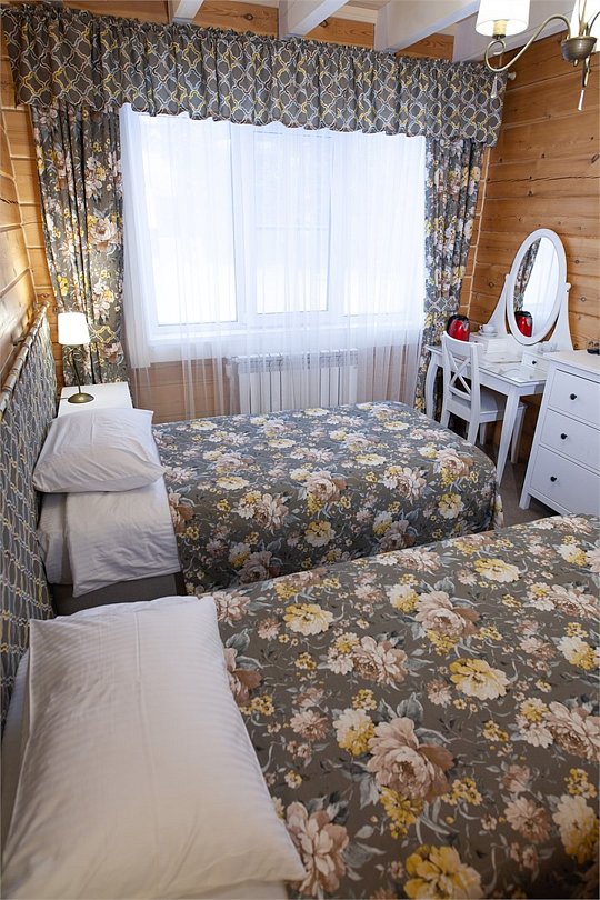 Уютные трехместные двухкомнатные номера в двухэтажном отдельностоящем доме рядом с рестораном. Идеально подойдут для компании и семьи. В номерах одна двуспальная кровать и, либо одна односпальная кровать, либо диван. Номера расположены на 1-м и 2-м этажах двухэтажного деревянного корпуса. Количество номеров - 2.Услуги и удобства