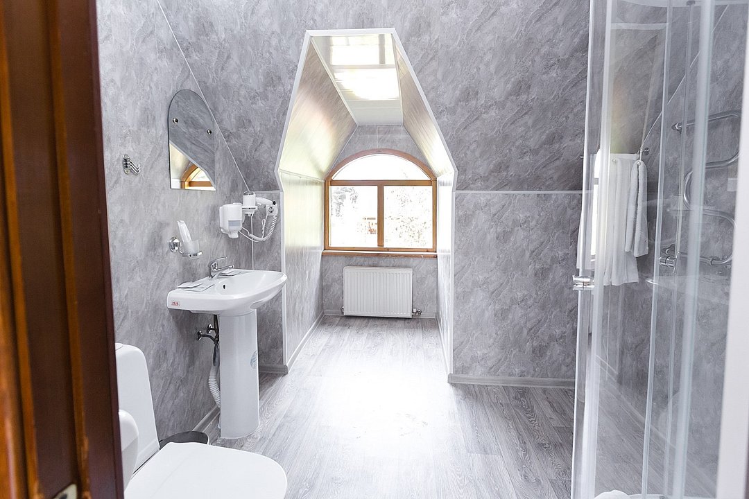 телевизор, Wi-Fi, ванная комната, душевая кабина, косметические средства, балкон, две односпальные кровати, унитаз, раковина, душ, вид во двор, туалетные средства, внутренний телефон, вид на лес, можно с питомцамиВ гостиничном номере