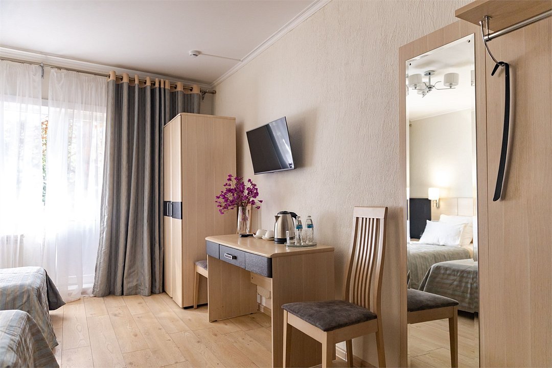 телевизор, Wi-Fi, интернет, светильник, настольные лампы, электронные замки, ванная комната, санузел, водонагреватель, банные полотенца, гигиенические средства, косметические средства, балкон, кровать «King size», тумбы, стулья, шкаф для одежды, вешалки, багажная тумба, две комнаты, чайный набор, чайник, унитаз, раковина, душ, кулер на этаже, три односпальные кровати, стол, цифровое тв, раскладной диван, внутренний телефон, телевизор с плоским экраном, вид на лес, можно с питомцамиВ гостиничном номере