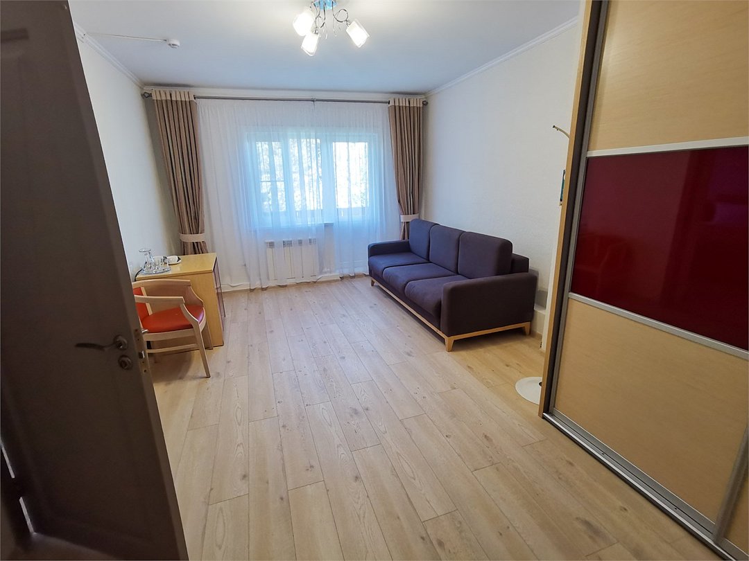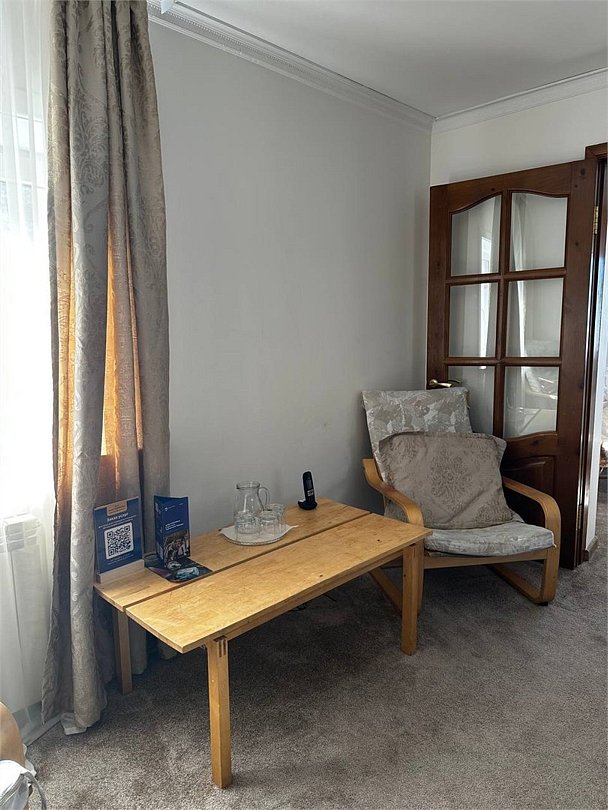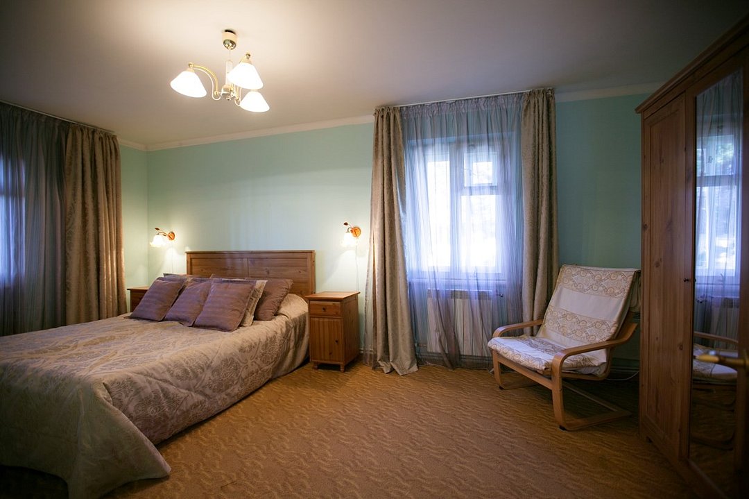 Уютный семейный двухкомнатный номер с балконом после реновации в 2021 году, выполнен в теплых светлых тонах, идеально подойдет для комфортного отдыха семьей. В спальне – одна большая семейная кровать, в гостиной – раскладной диван. Номер расположен на 2-м этаже двухэтажного деревянного корпуса без лифта. Количество номеров - 1.Услуги и удобства