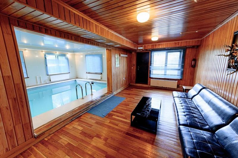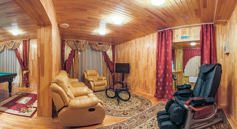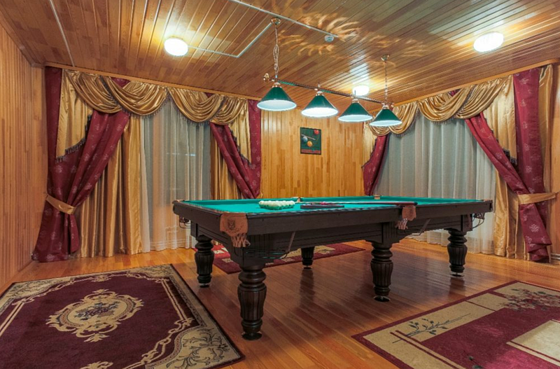 На 1 этаже — финская сауна, хамам, бассейн, на 2 этаже — комната досуга, бильярд, массажное кресло, кабинет.