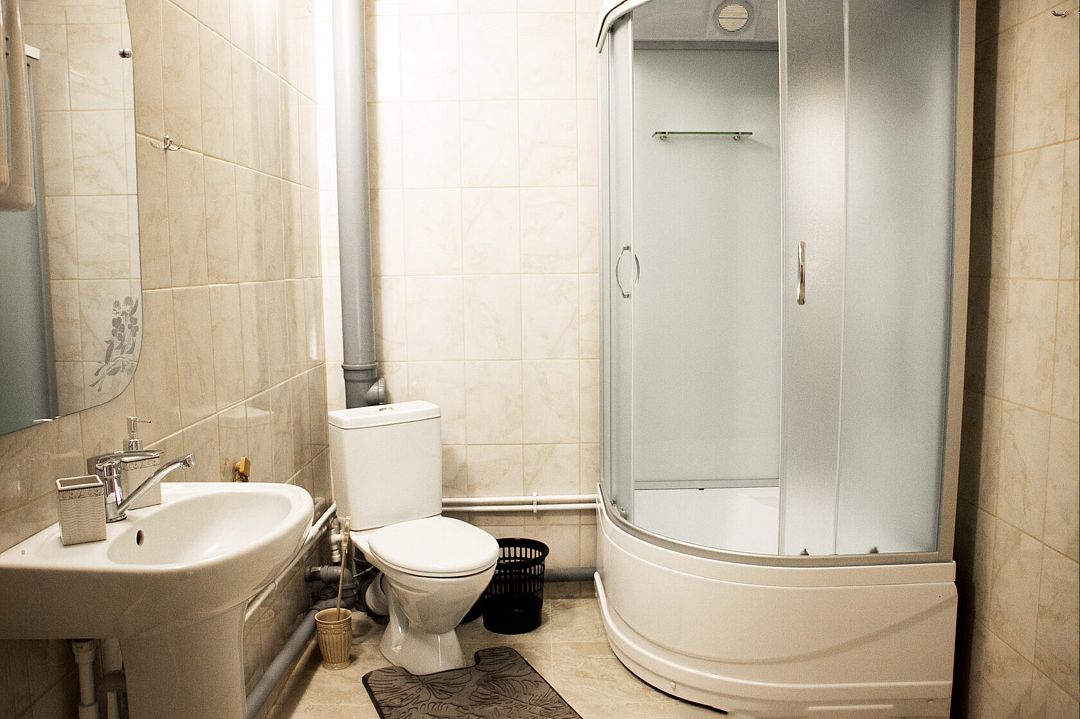 На первом этаже находится туалет, раковина и душевая кабина.