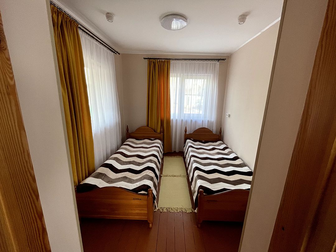 В коттедже находится 7 комнат с одной односпальной (3 комнаты) и двухспальной кроватью (4 комнаты).