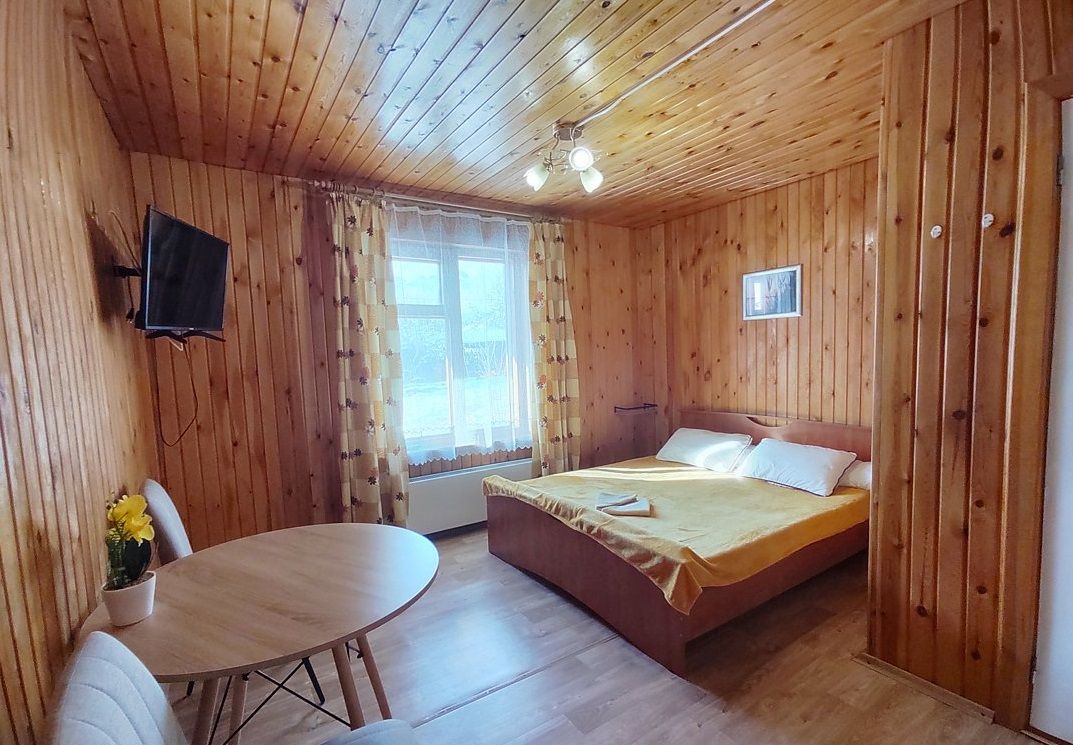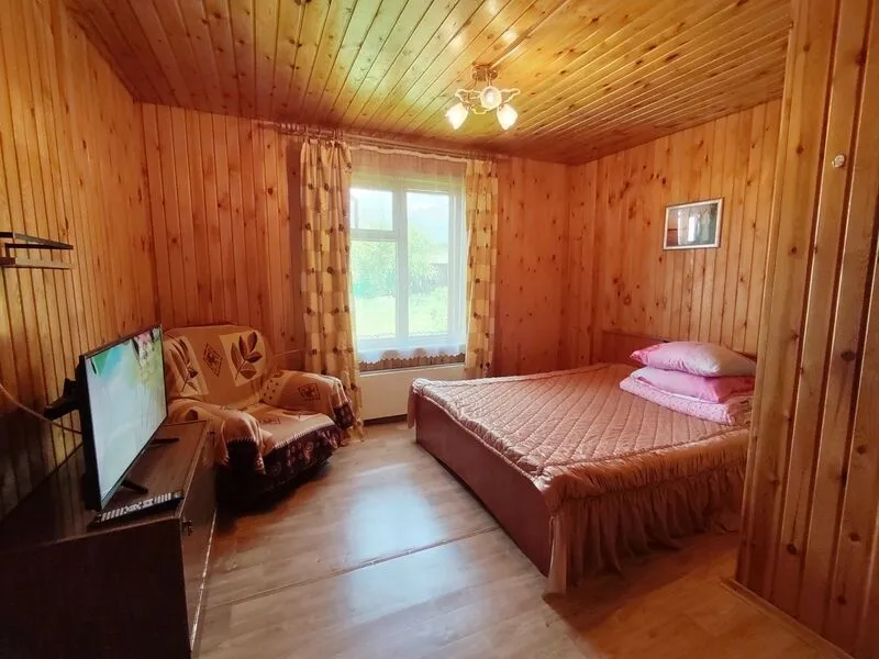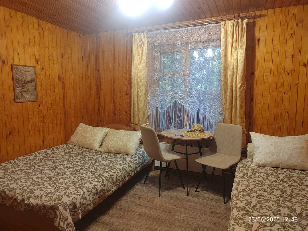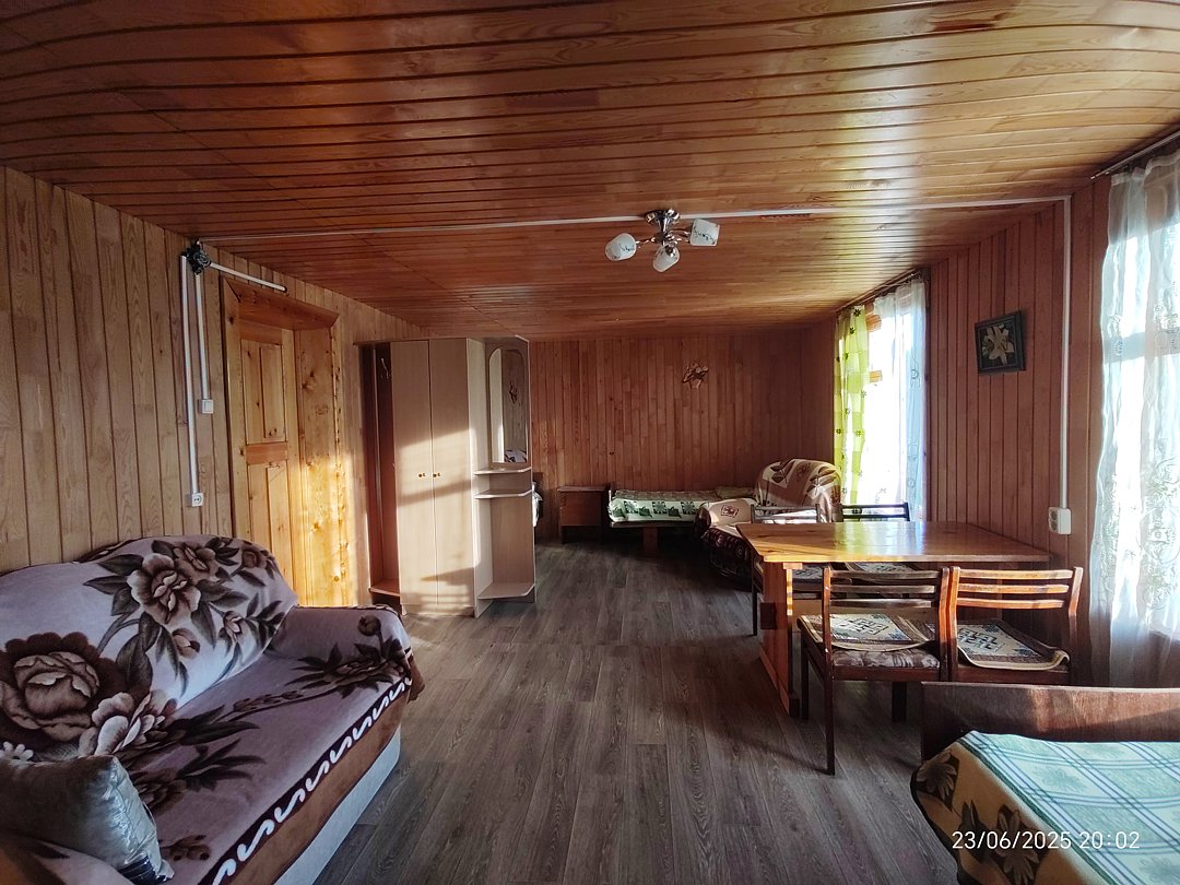 Тишина, пение птиц. Удобные новые матрасы, лёгкие и в меру тёплые новые натуральные одеяла, новые комфортные подушки. В номере кухонная зона и санузел с душем. Есть баня-сауна с санузлом и с купелью.
