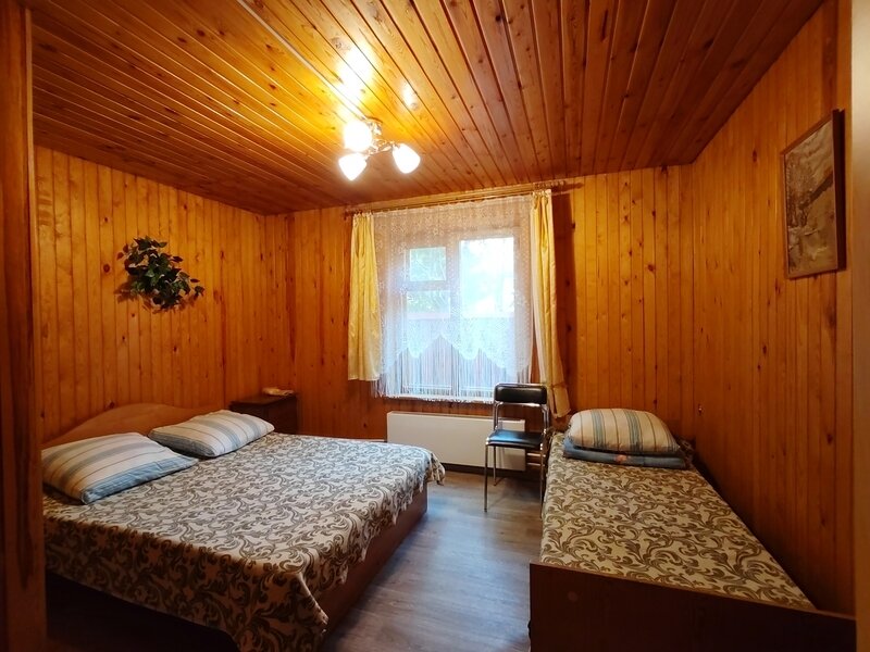 Двух-трёхместный номер на 1-м этаже с одноместной и полутораспальной кроватями.