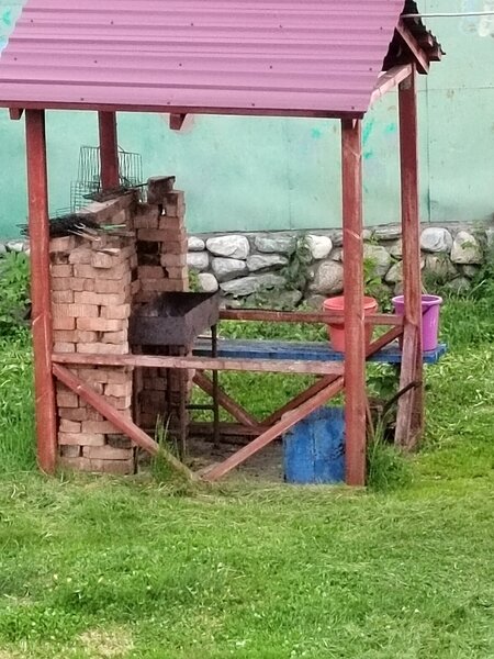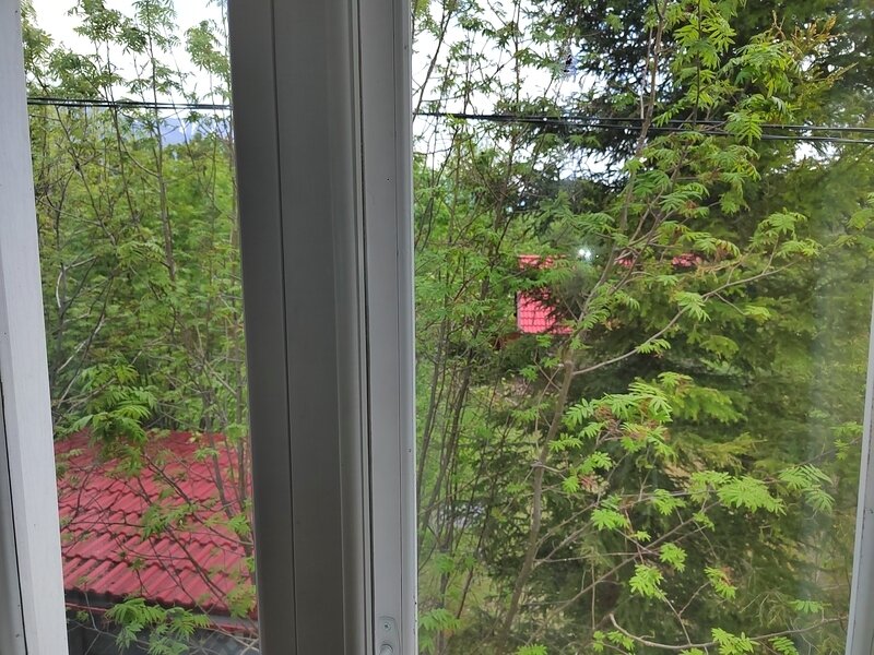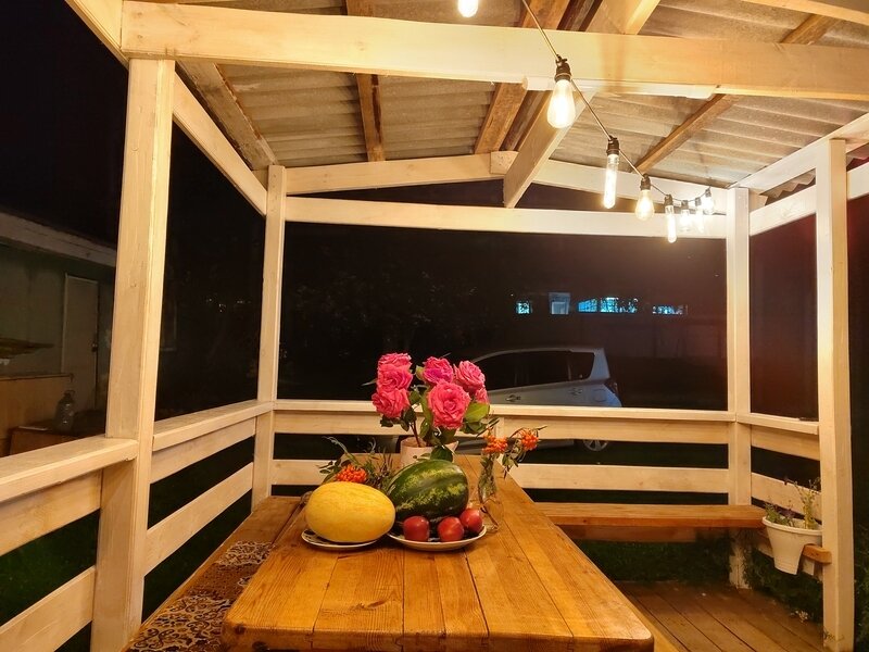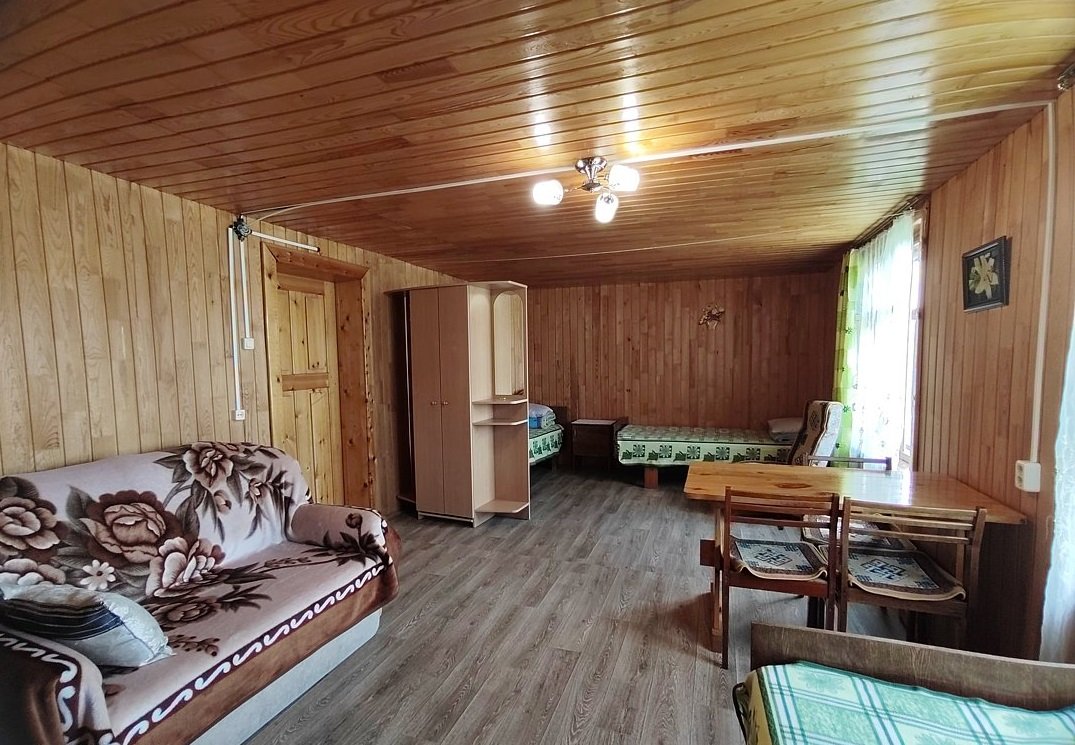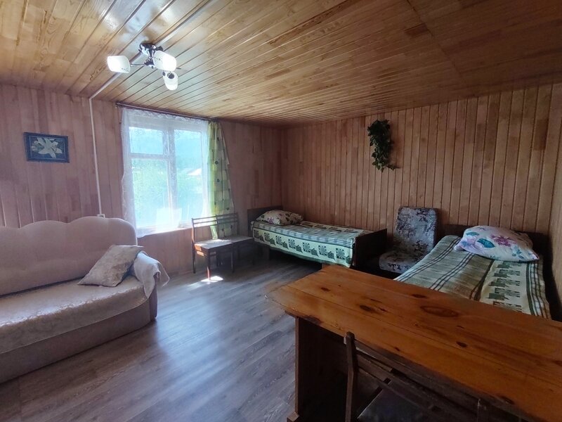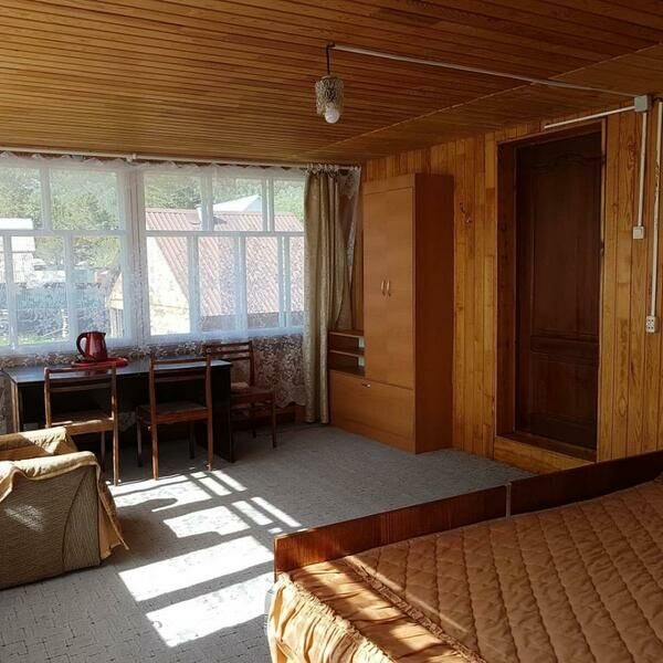 Однокомнатный номер с окном во двор и на горы. На 1-м этаже. Напротив номера — кухня. Туалет в номере, душ общий (вход с заднего крыльца). Также есть баня-сауна с душем.