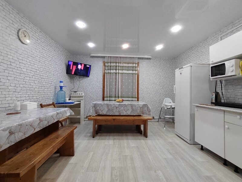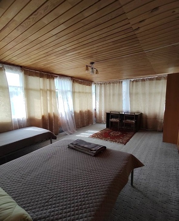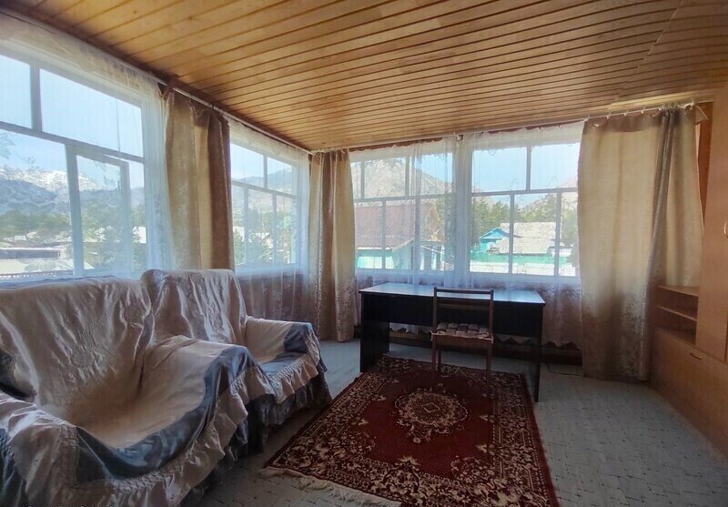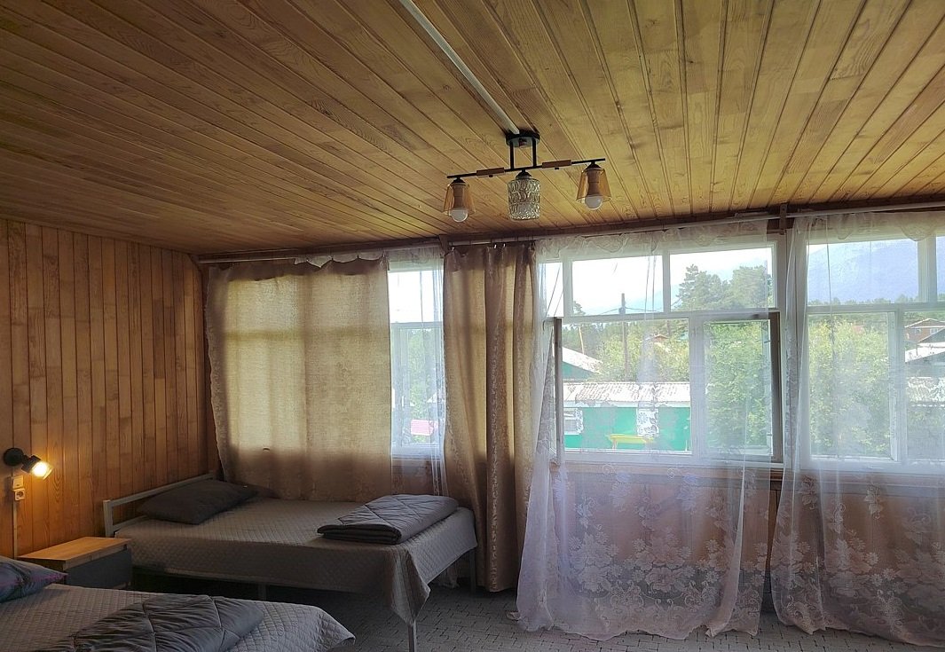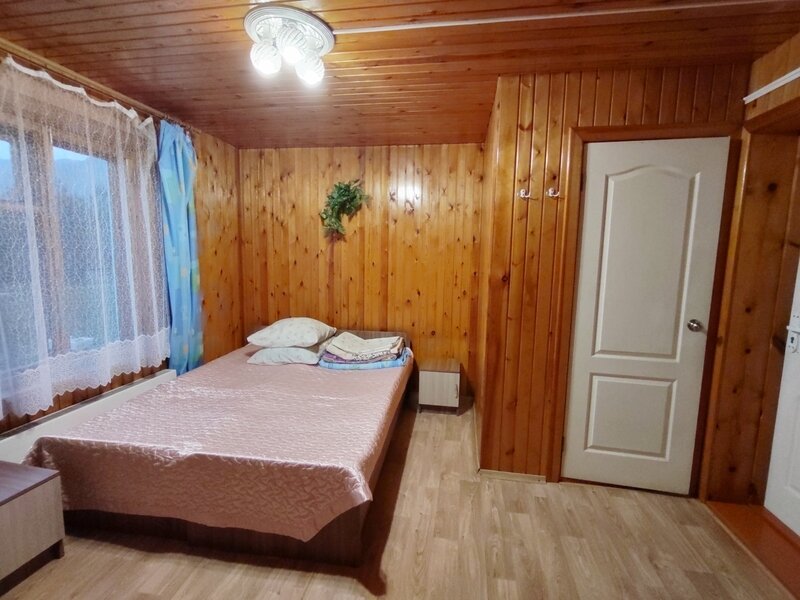 2-х местный номер с 2-спальной кроватью на 1 этаже с окном во двор и на горы. Туалет с раковиной в номере, душ отдельно (в тёплом помещении с выходом на заднее крыльцо дома). Также есть баня-сауна с душем и небольшим бассейном. Общая кухня со всем содержимым на 1 этаже. Большая территория с уютными беседками, мангалами. Есть качели. Парковка на территории. До центра Аршана 10мин неспешным шагом по берегу реки.